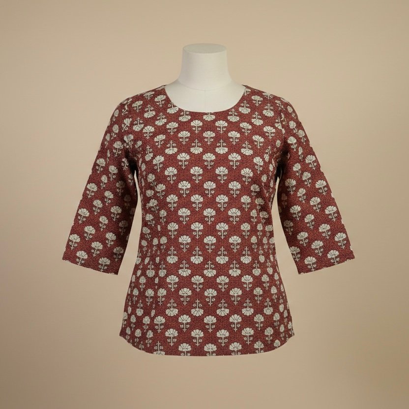 Rust Red Printed Cotton Kurti
